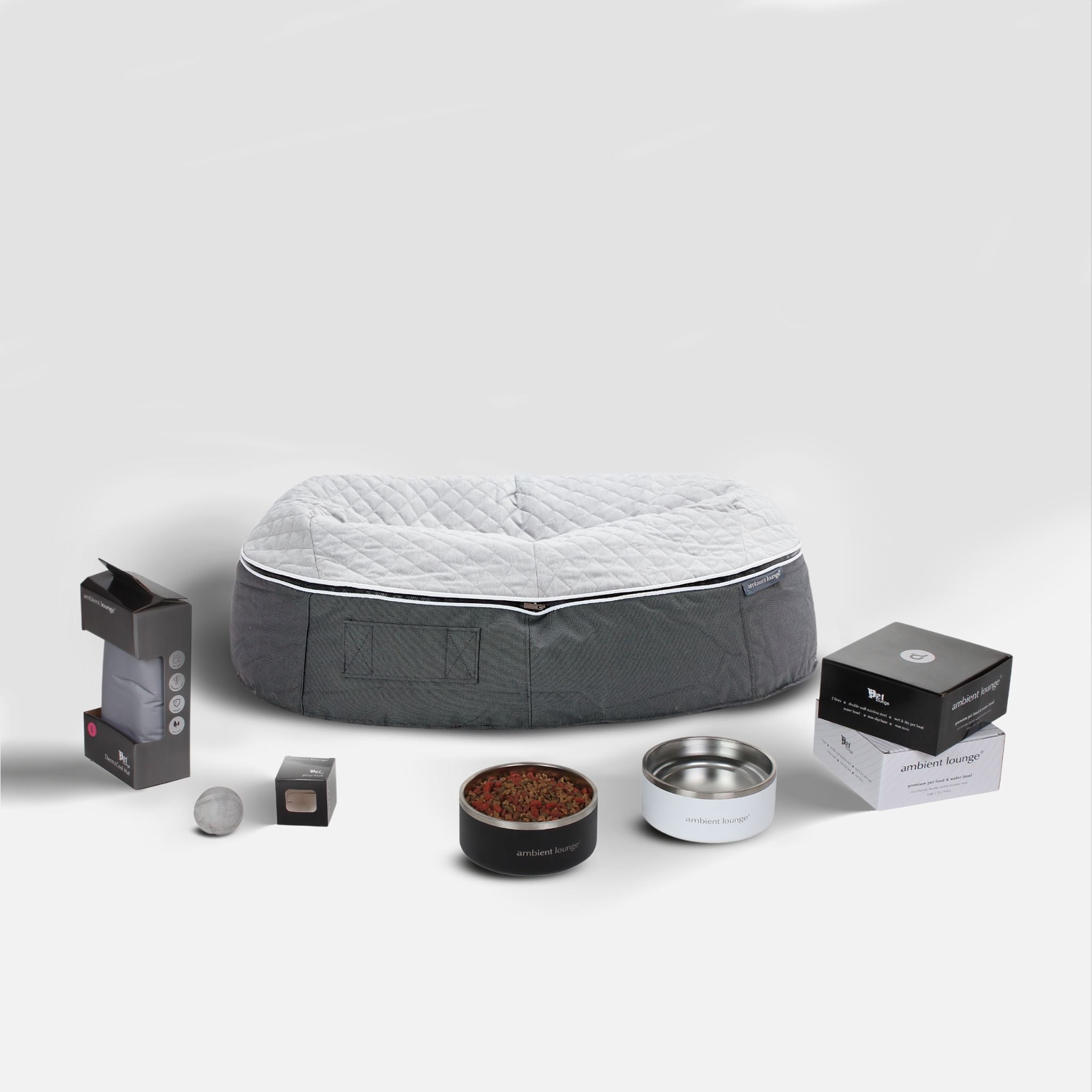 Get set to spoil your dog with the ultimate doggy extravaganza – introducing our Large Dog Essentials Pack! Because when it comes to pampering your pup, bigger is definitely better. It's like saying "mi casa es su casa" in the language of comfort, luxury, and a whole bunch of tail-wagging fun. The Large New Dog Essentials Pack comes with a large-sized luxury chew-resistant dog bed with a top cover, a stainless steel dog bowl, a cooling mat for the hot summer days, and a play ball chew toy to help your dog warm up to you.