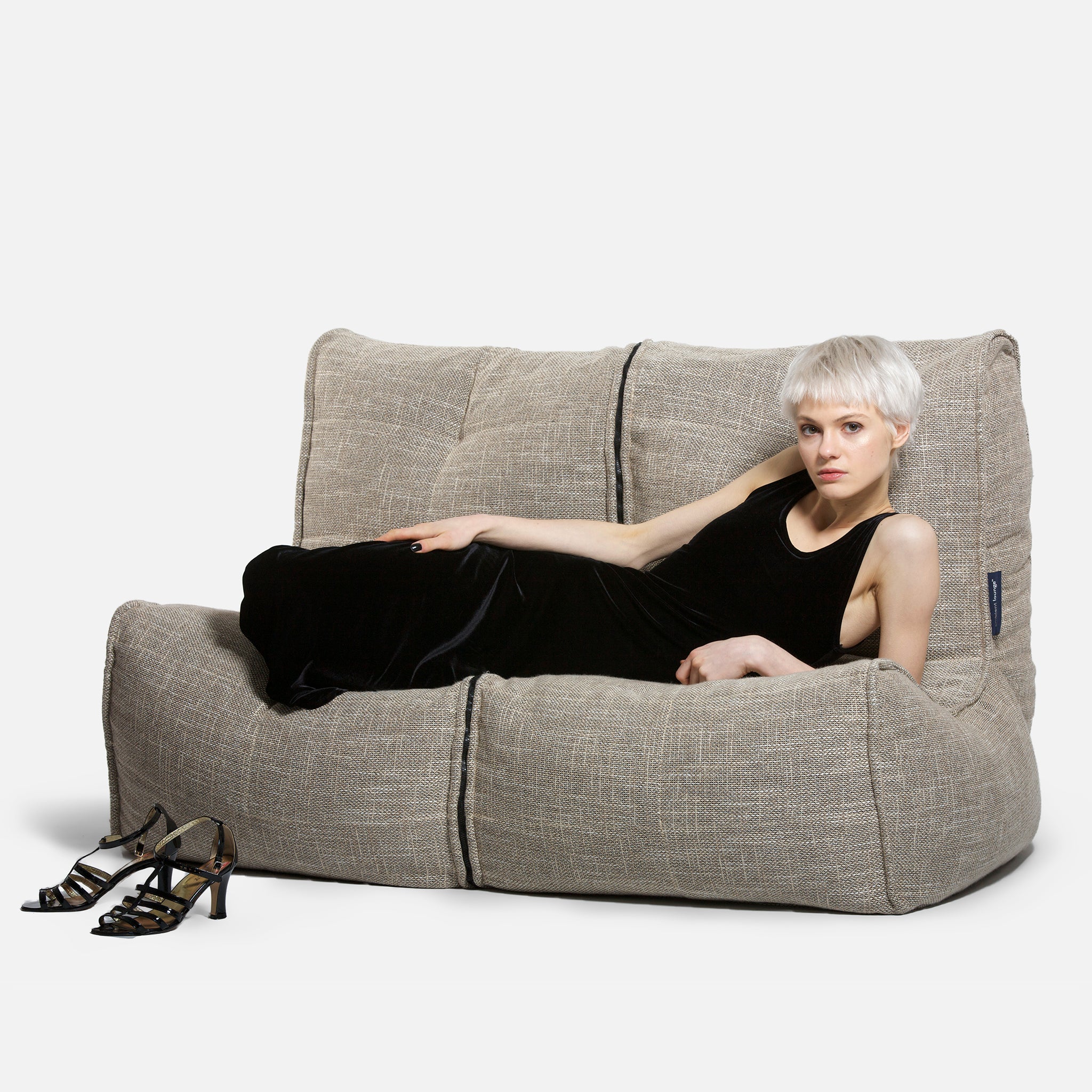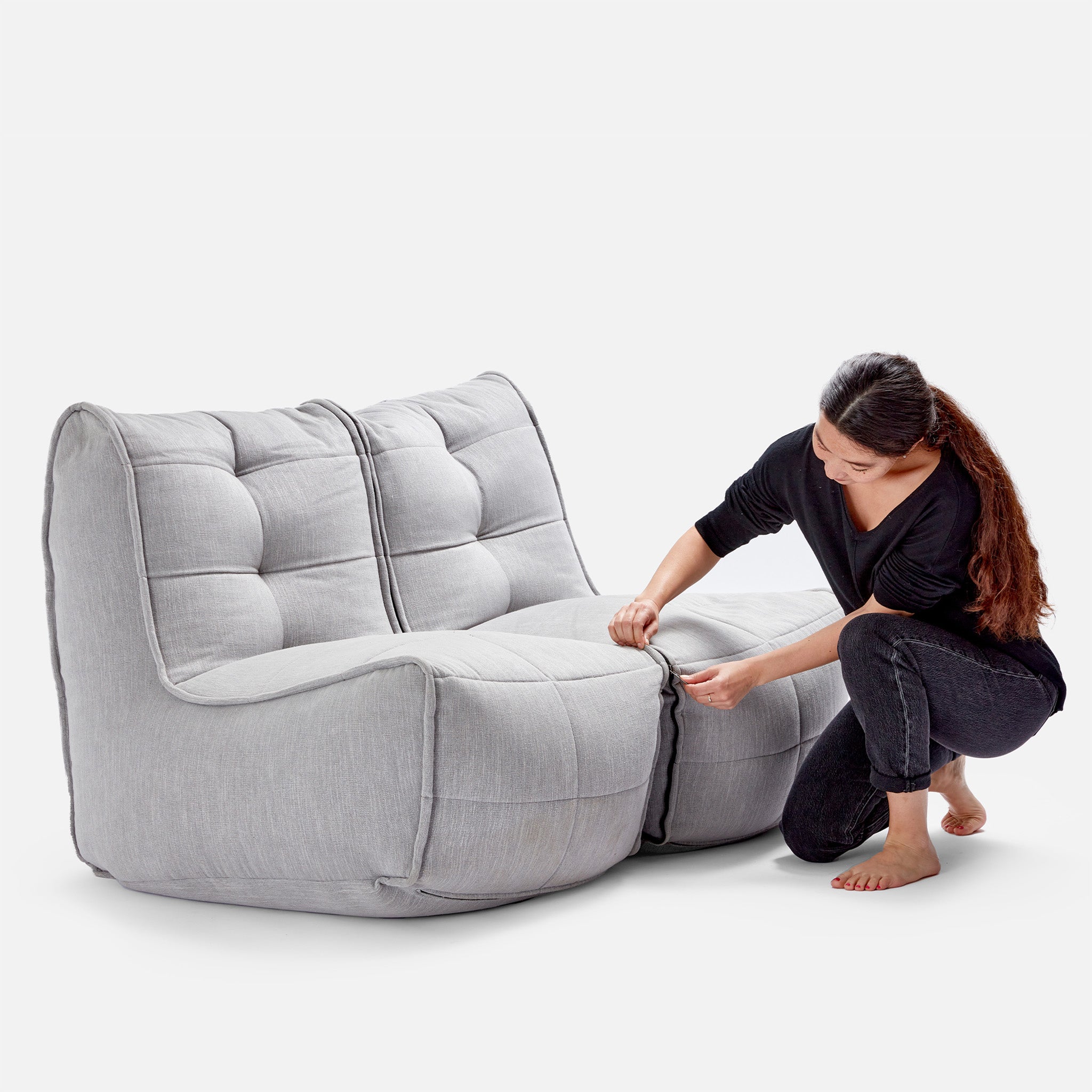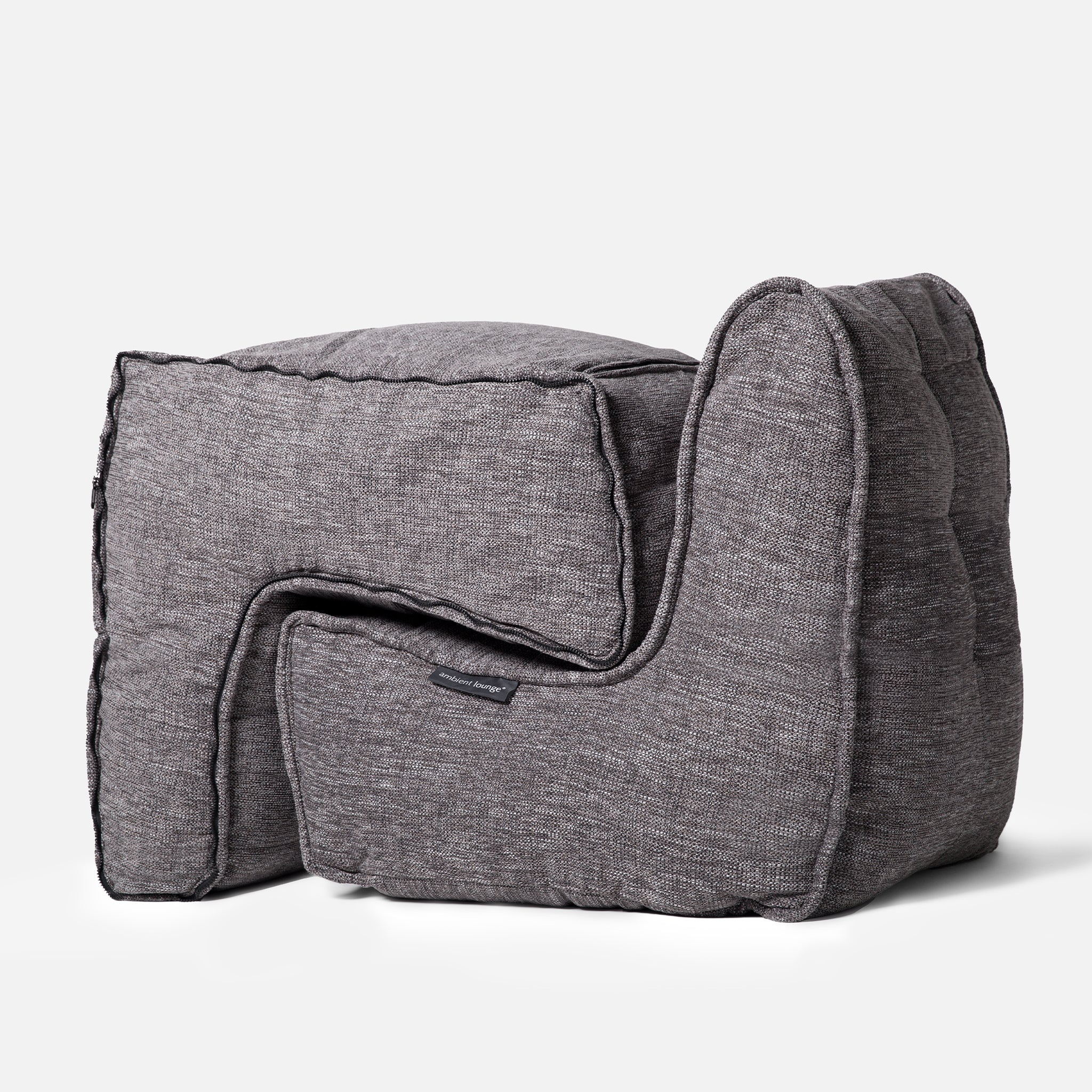 ambient lounge® designers pioneered internal elastics back in 2008. Experience full body lounging with the Twin Couch; made with premium & soft fabrics, comfortable seating hight, back support and versatile design to zip together or apart.