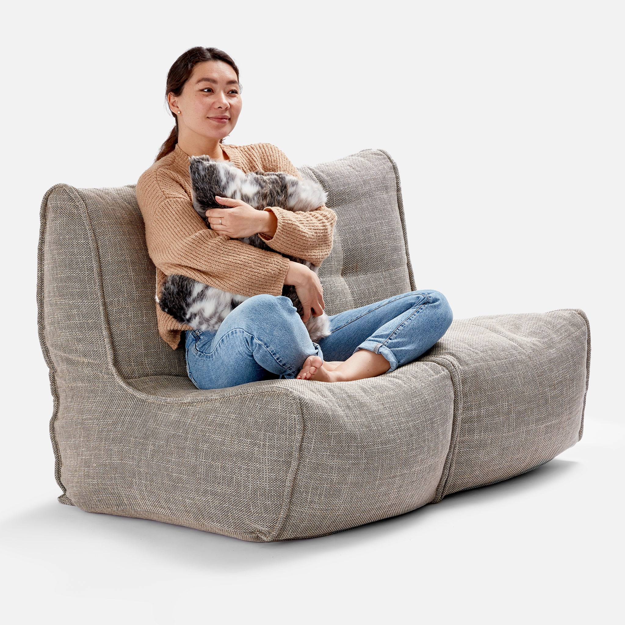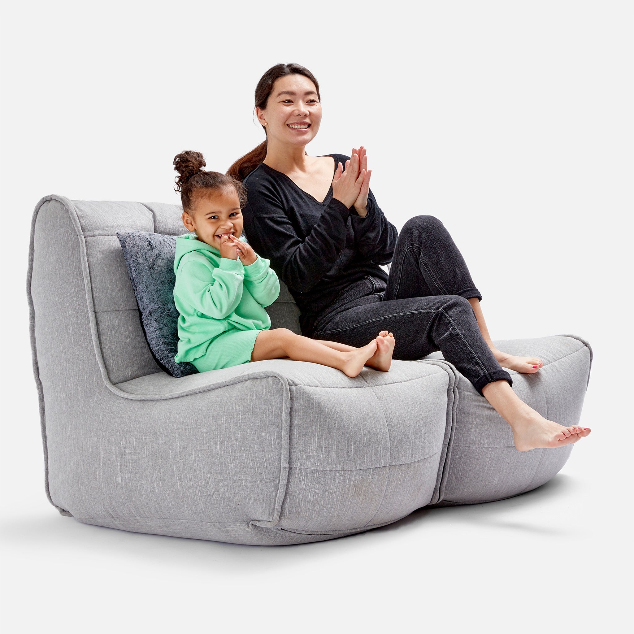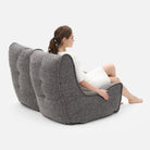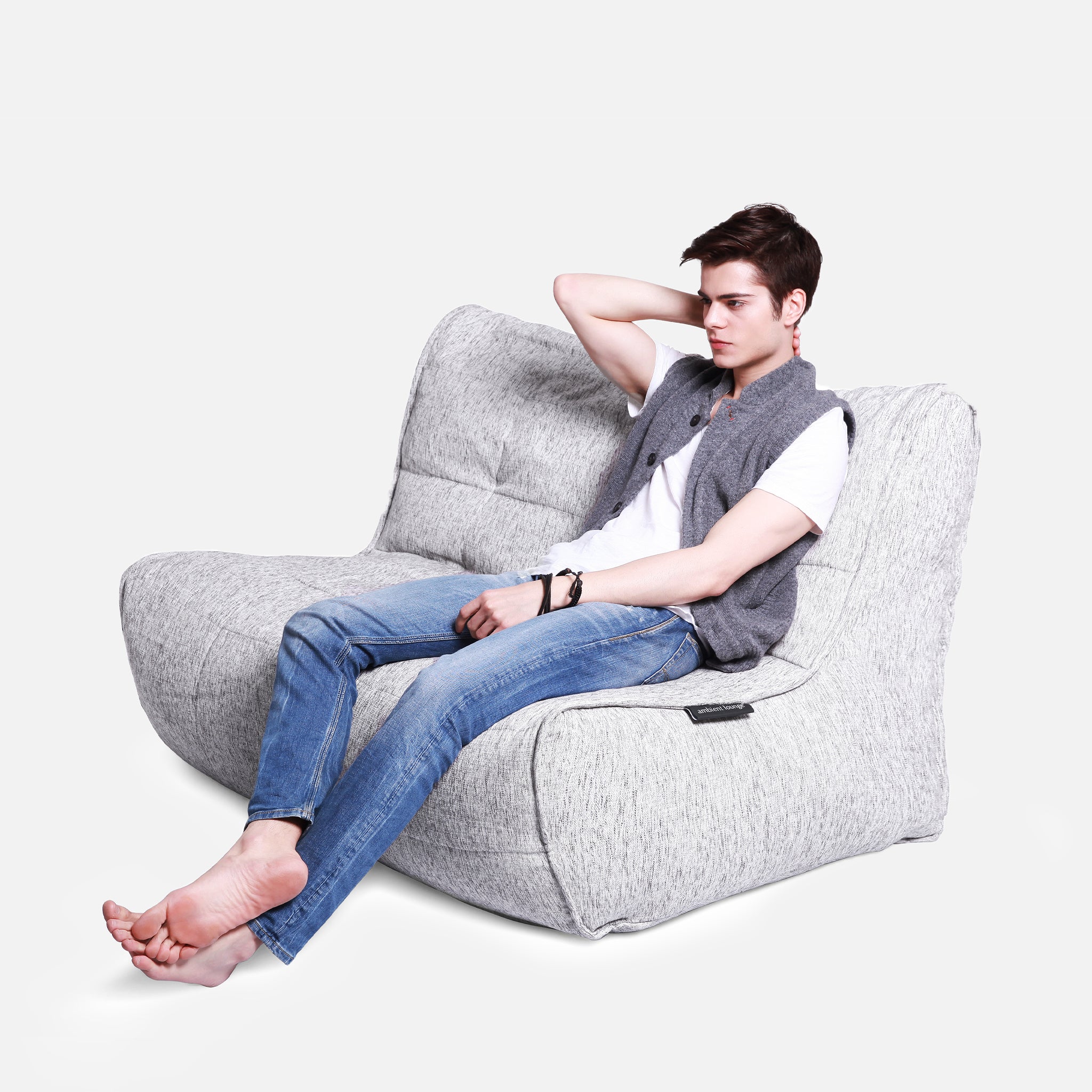 ambient lounge® designers pioneered internal elastics back in 2008. Experience full body lounging with the Twin Couch; made with premium & soft fabrics, comfortable seating hight, back support and versatile design to zip together or apart.