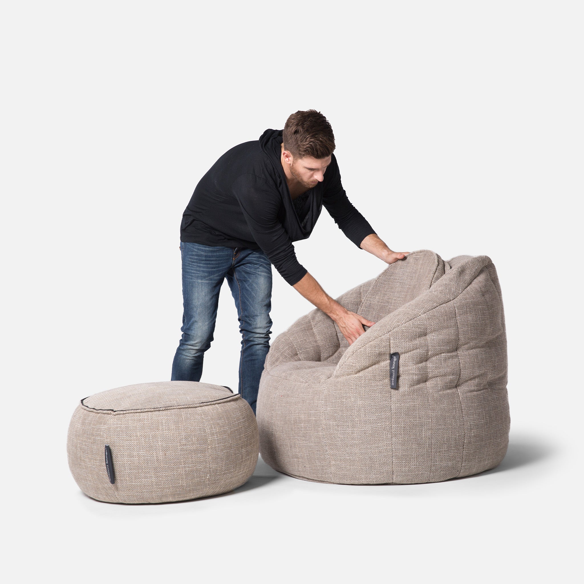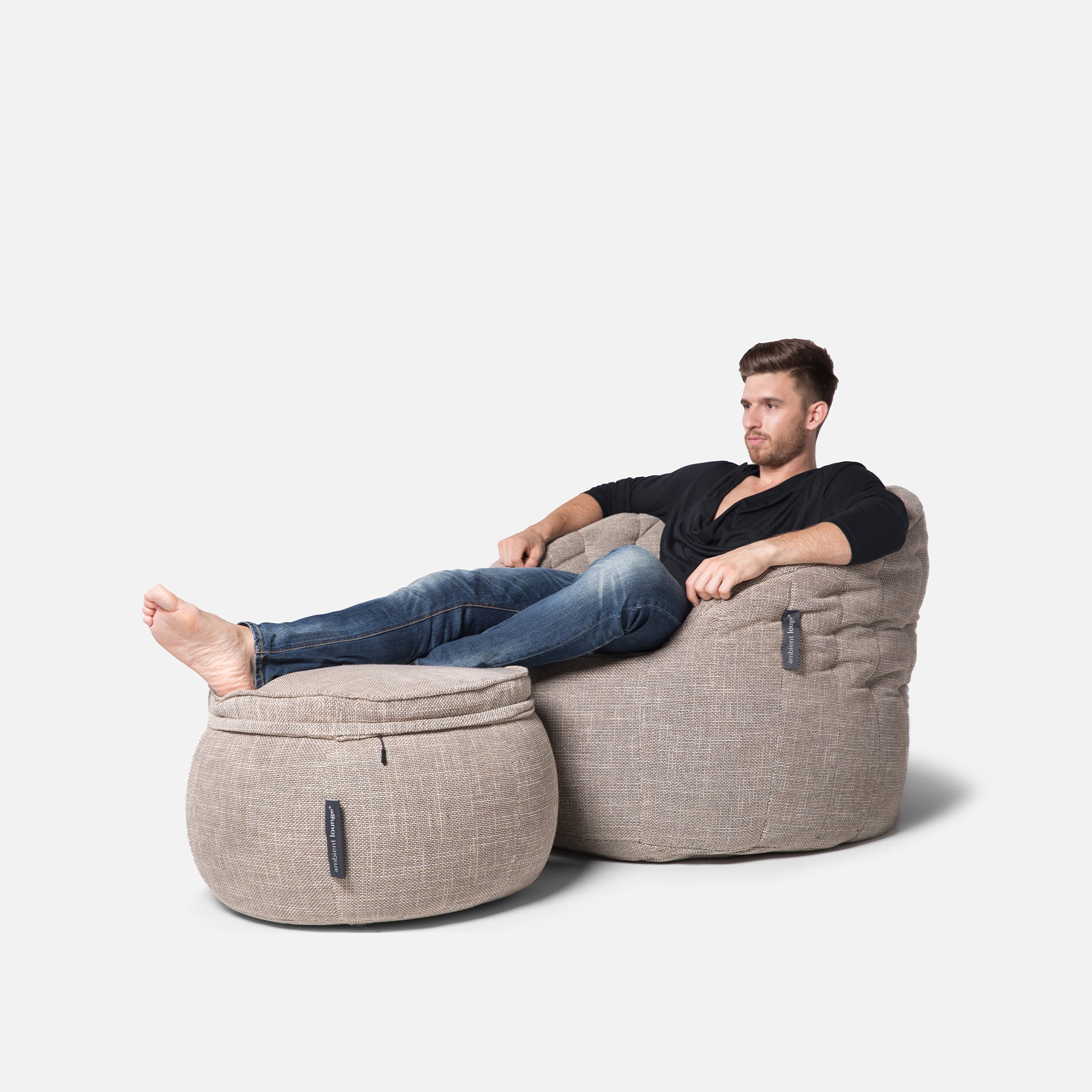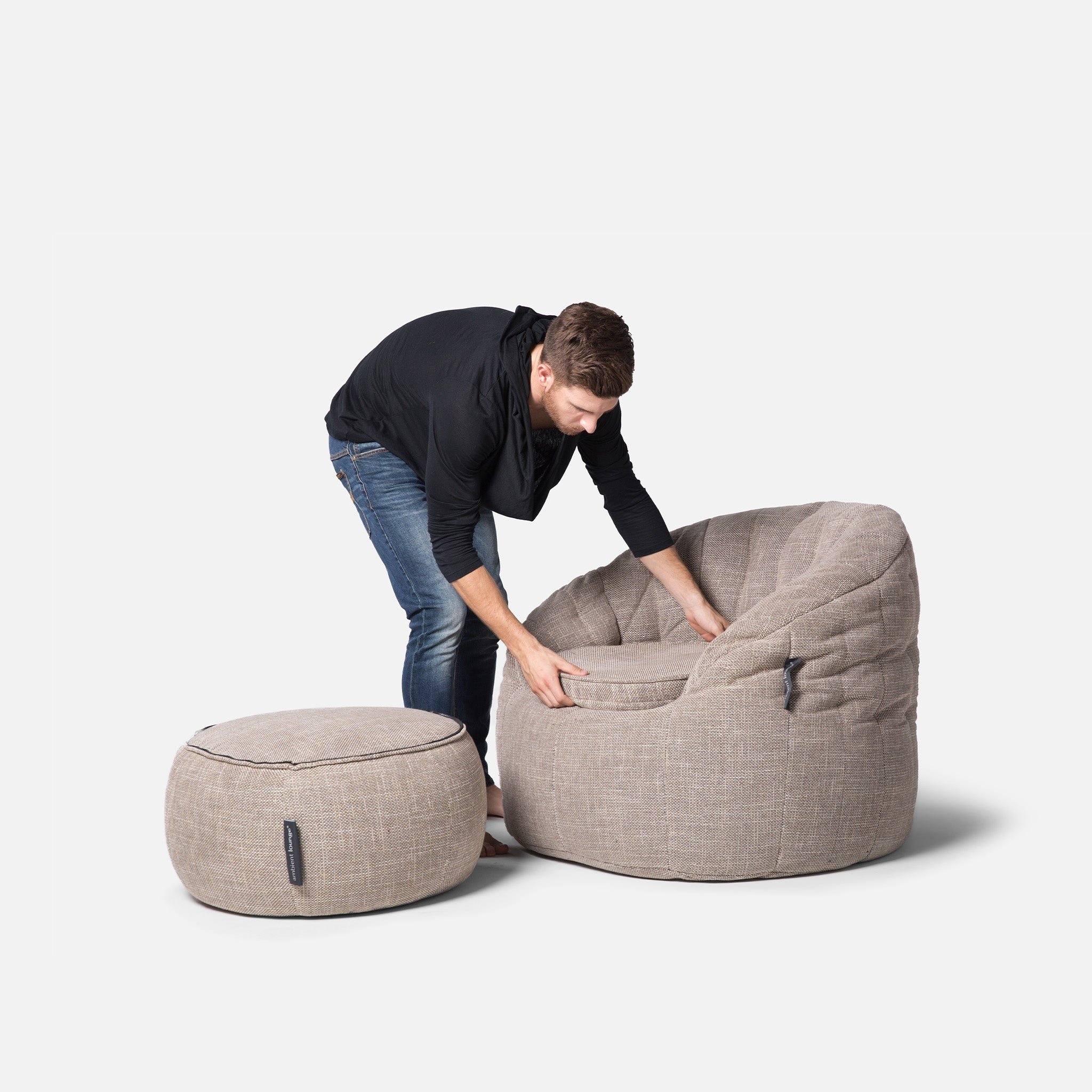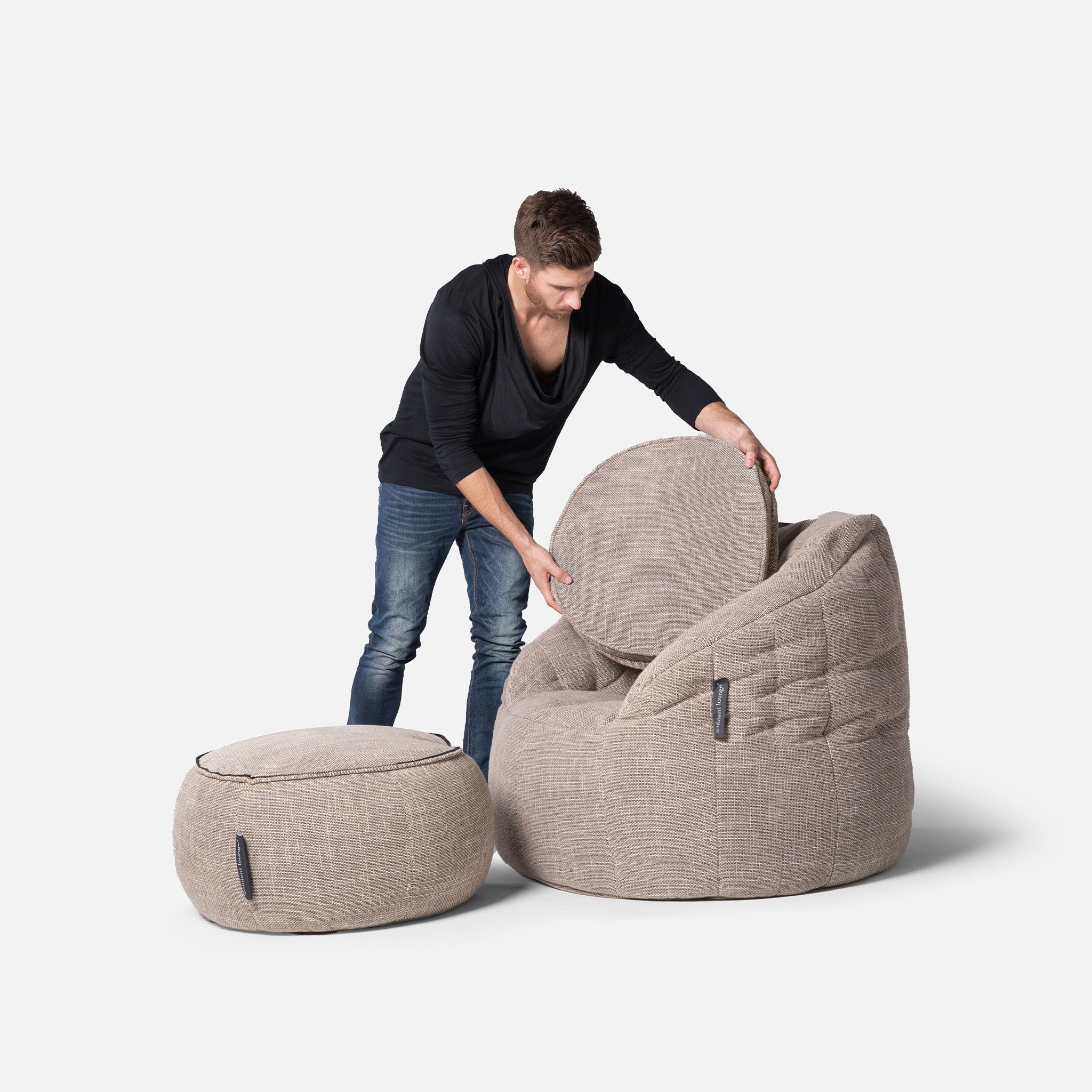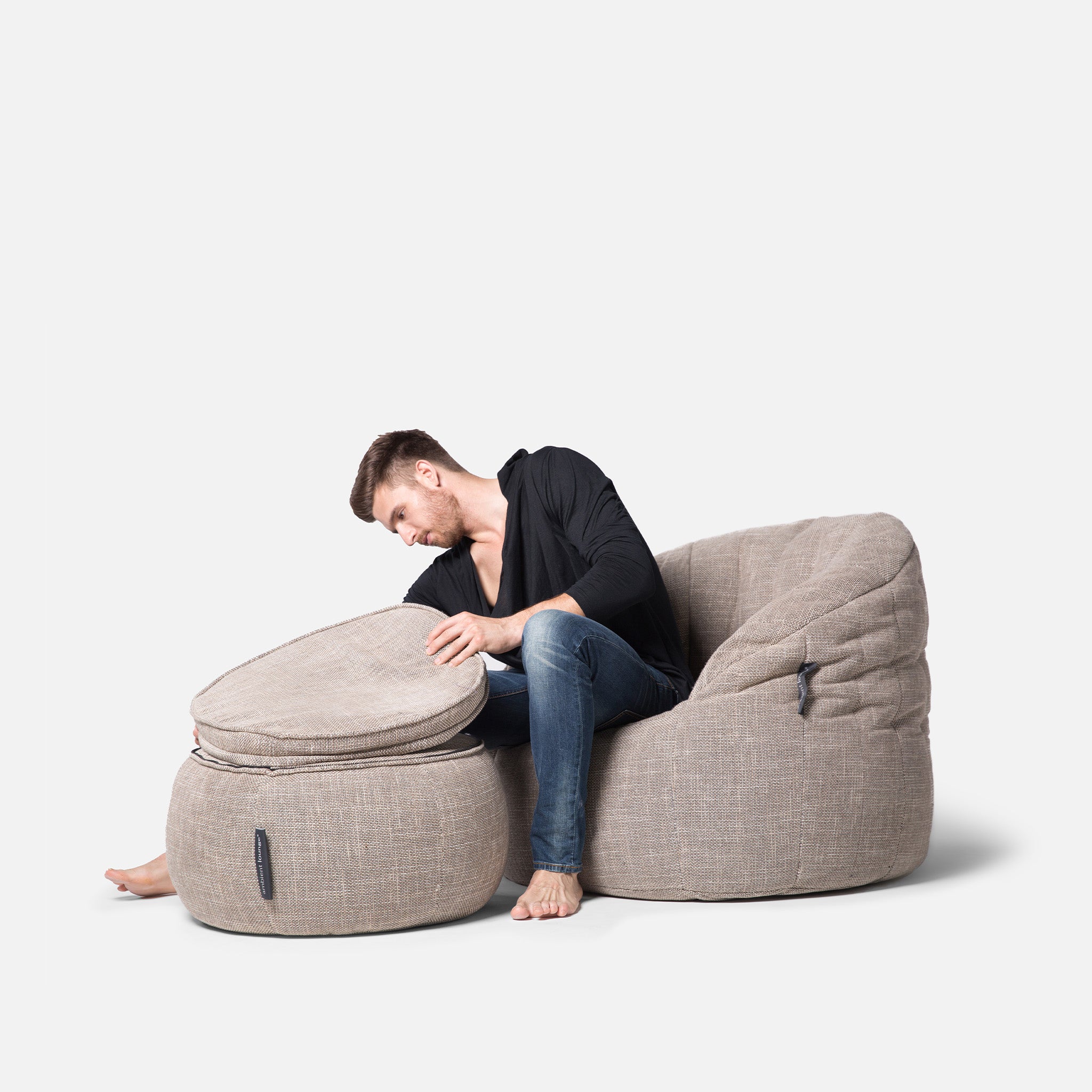 Discover why ambient lounge® is the choice of UK interior designers since 2005 with unique, elastic-structured soft furniture. Made lovingly with premium weave fabrics, they hug + support your body & retain a beautiful, sophisticated, comfy shape in your home for many years. Now available to order with SoLuxe™ sustainable foam mix pre-fill.