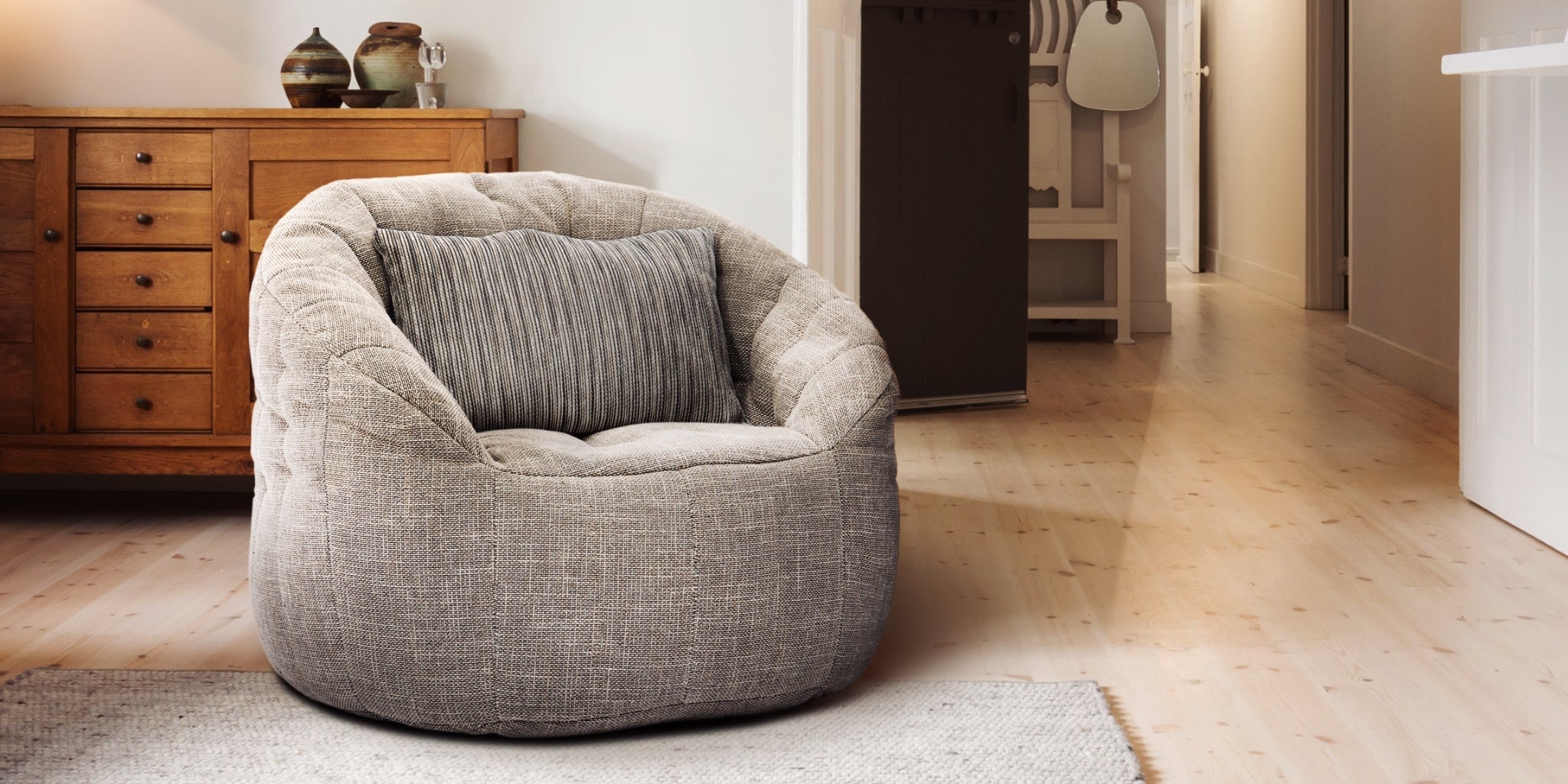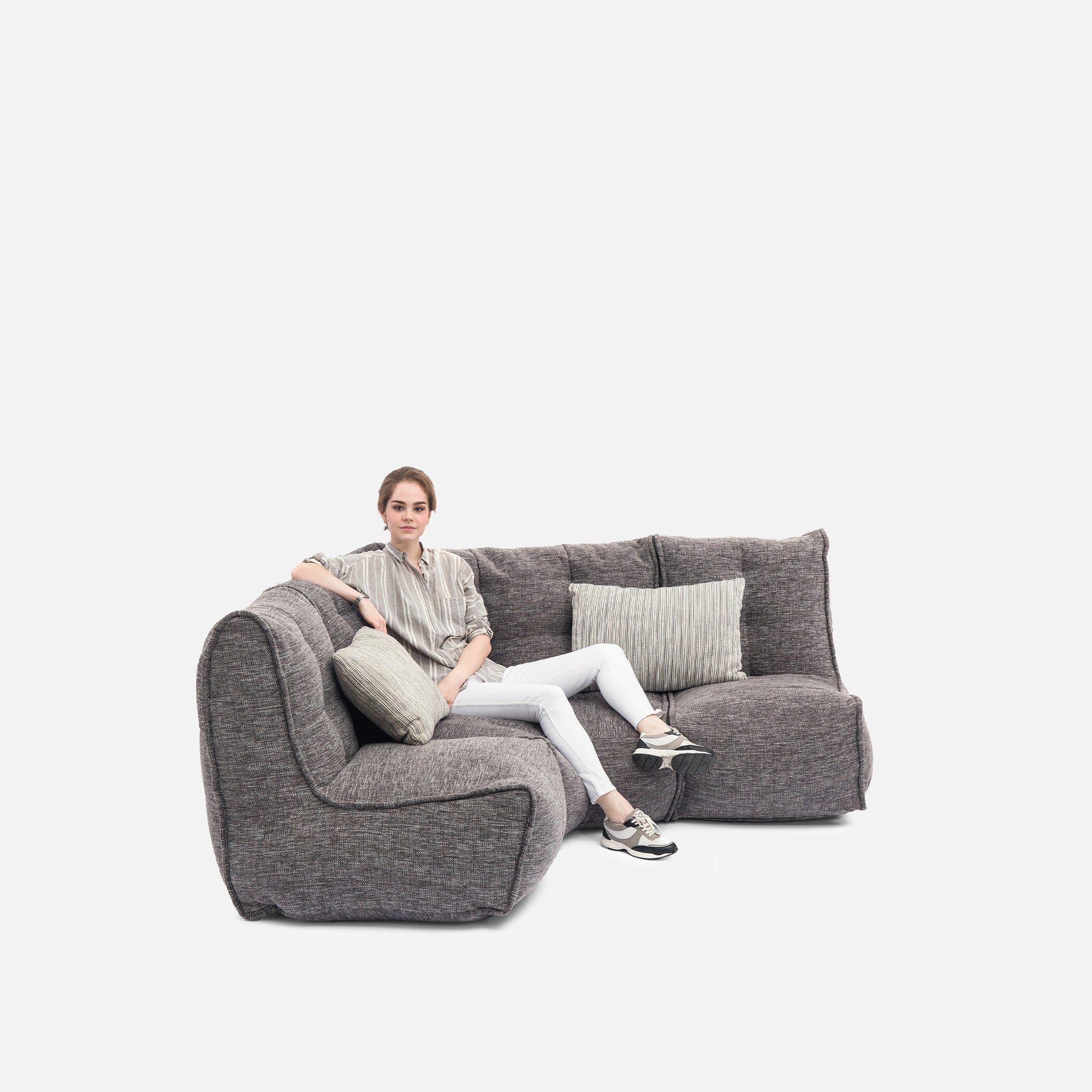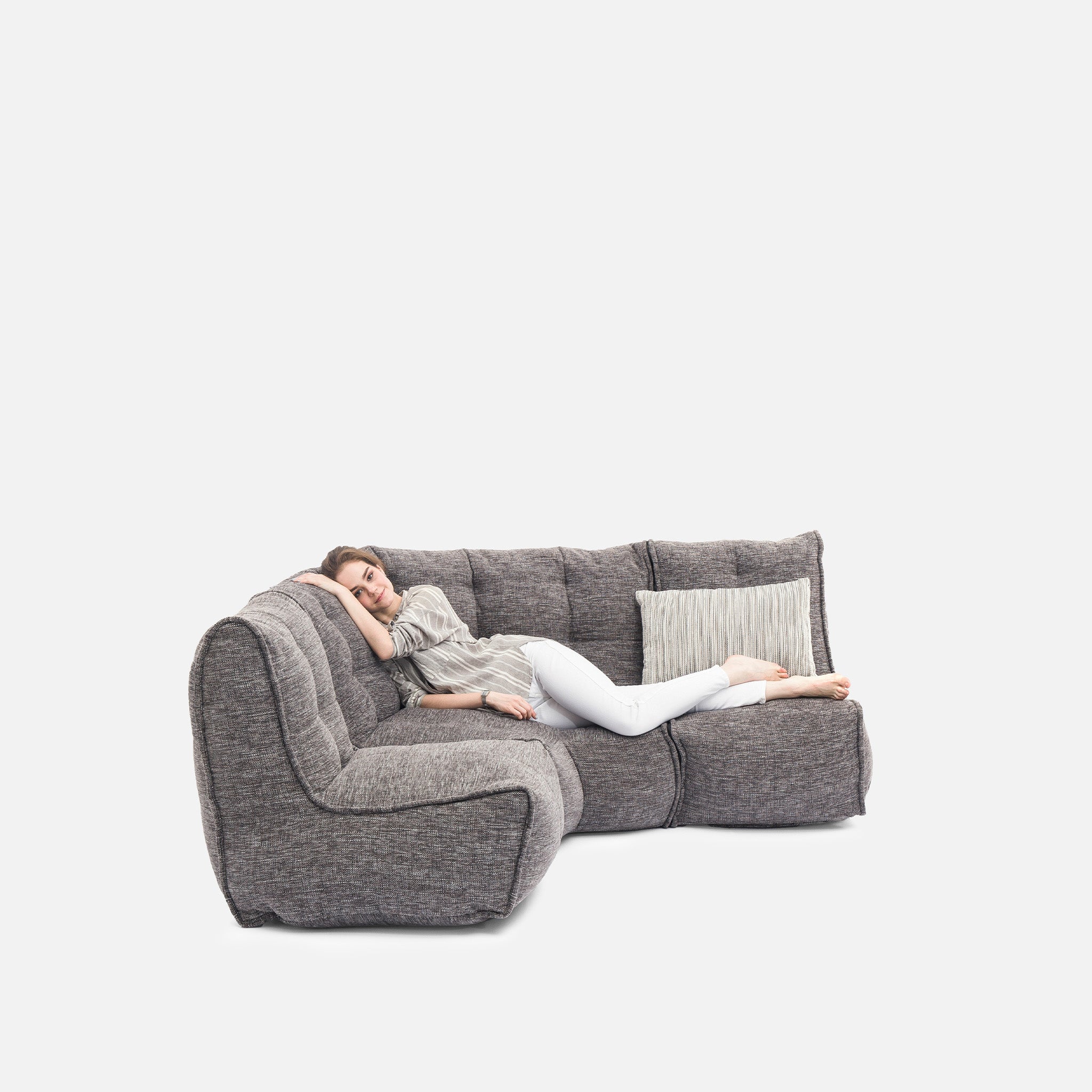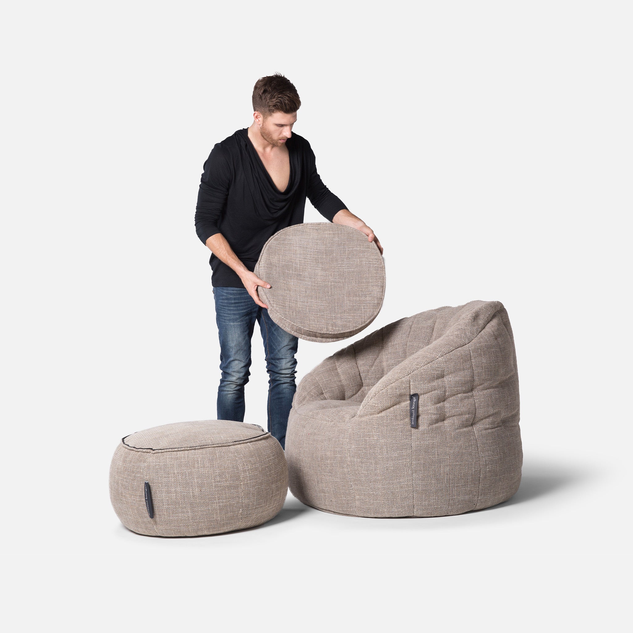 Discover why ambient lounge® is the choice of UK interior designers since 2005 with unique, elastic-structured soft furniture. Made lovingly with premium weave fabrics, they hug + support your body & retain a beautiful, sophisticated, comfy shape in your home for many years. Now available to order with SoLuxe™ sustainable foam mix pre-fill.