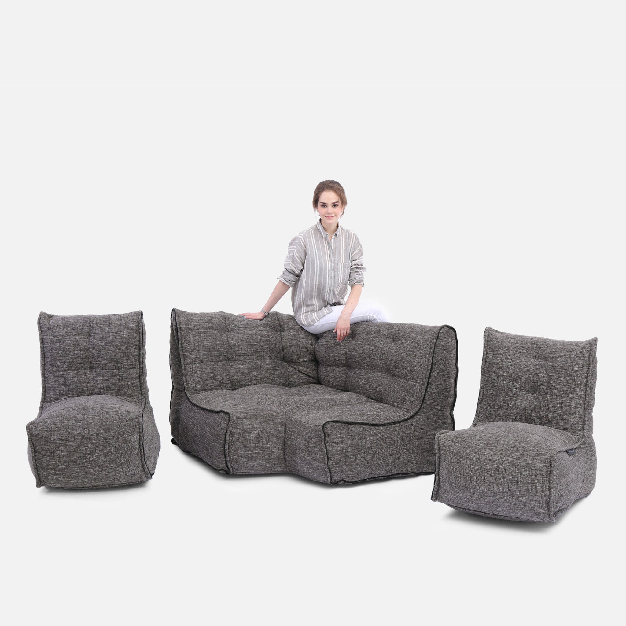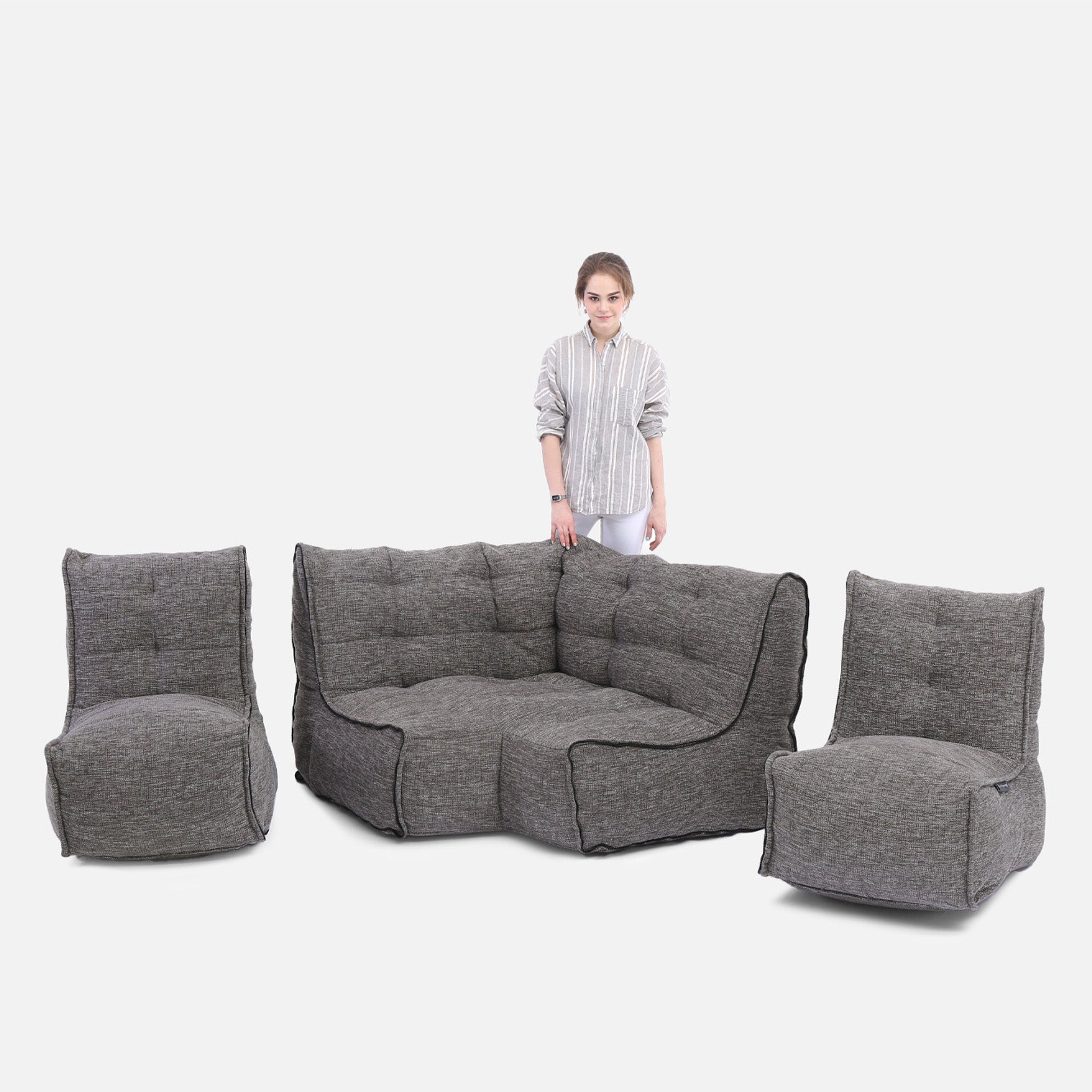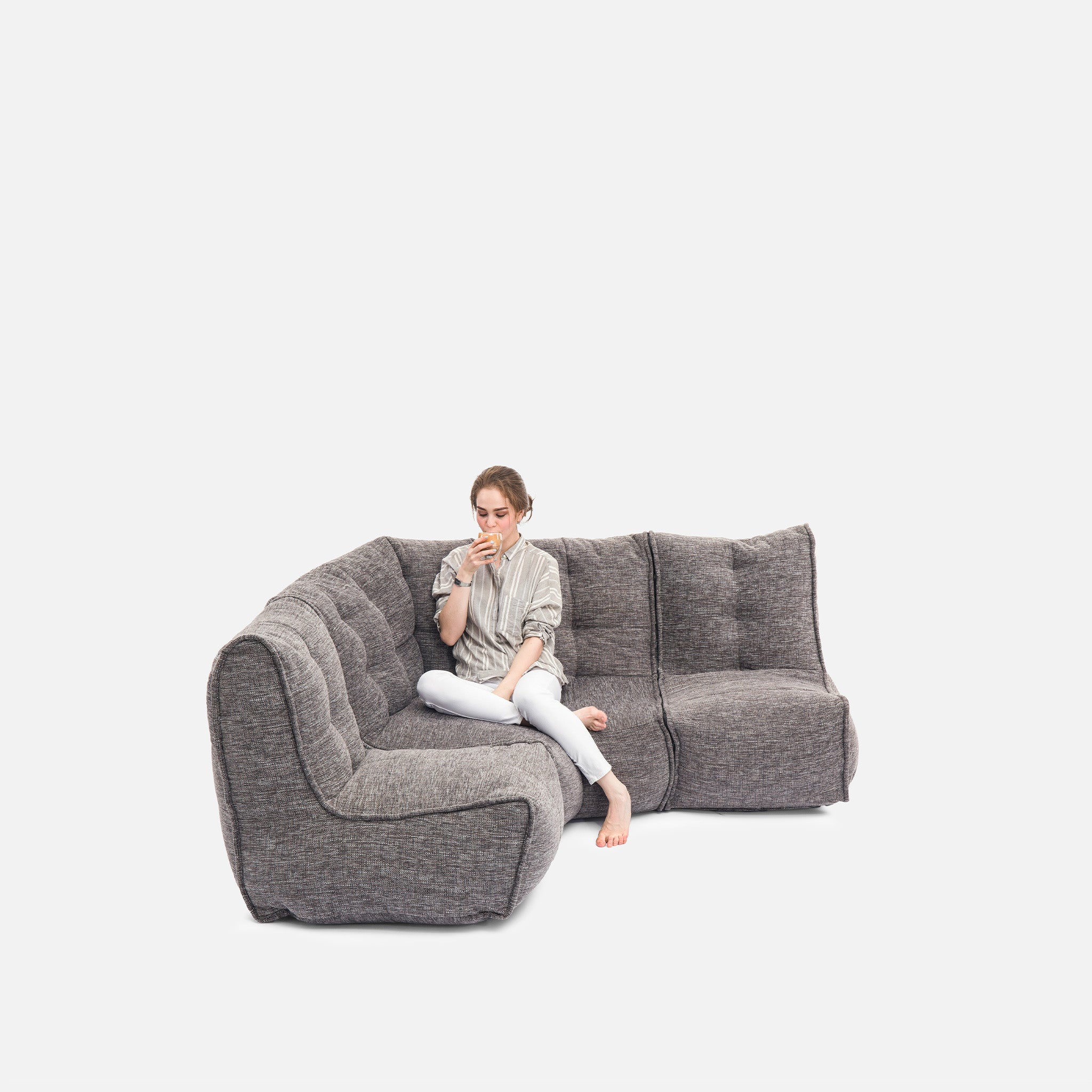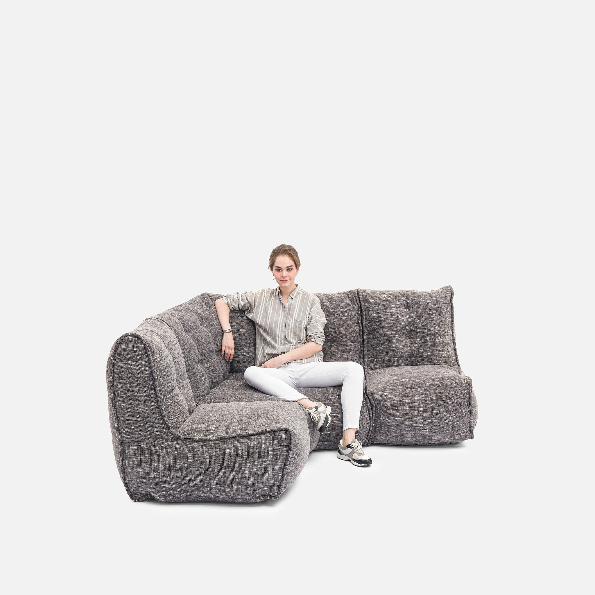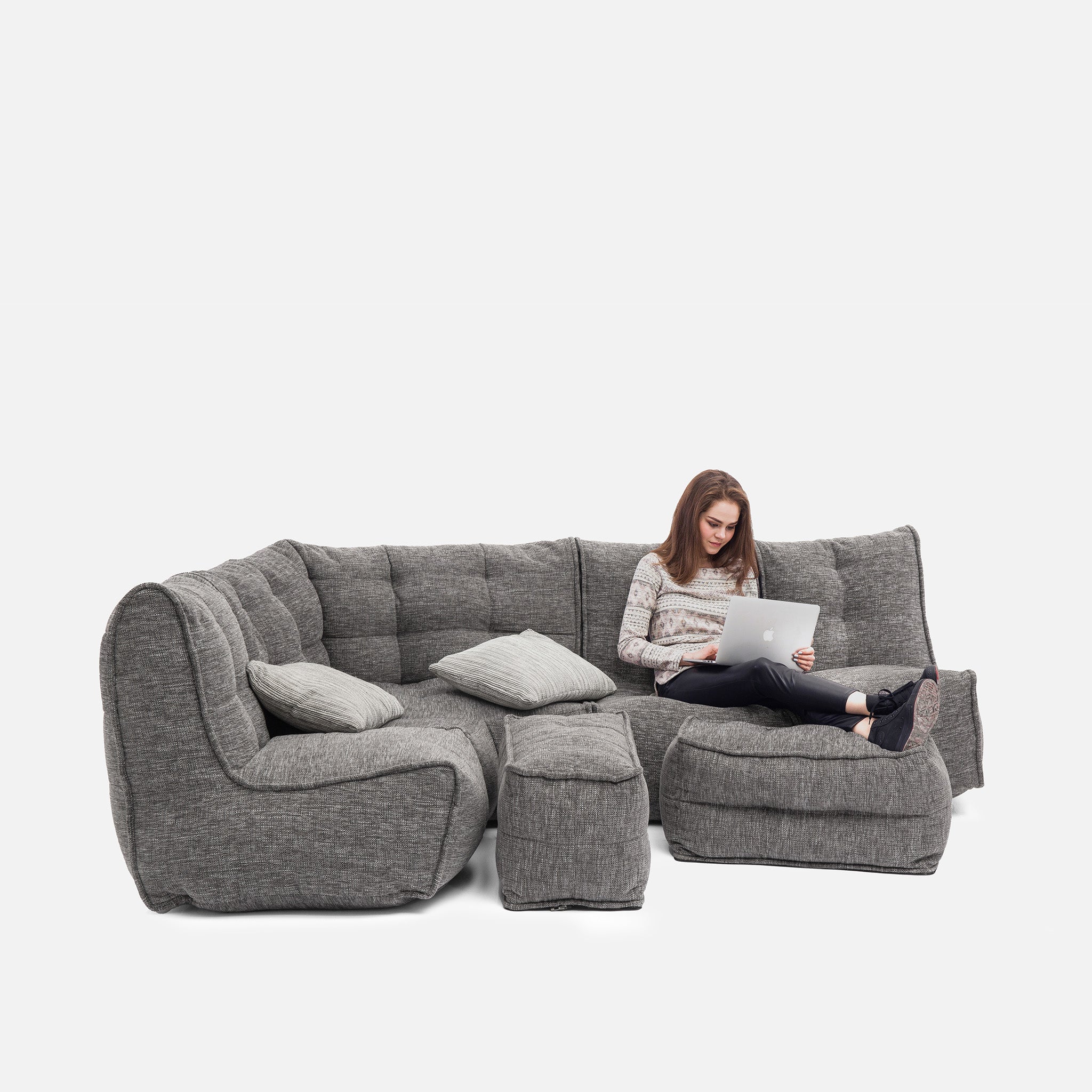Discover why ambient lounge® is the choice of UK interior designers since 2005 with unique, elastic-structured soft furniture. Made lovingly with premium weave fabrics, they hug + support your body & retain a beautiful, sophisticated, comfy shape in your home for many years. Now available to order with SoLuxe™ sustainable foam mix pre-fill.