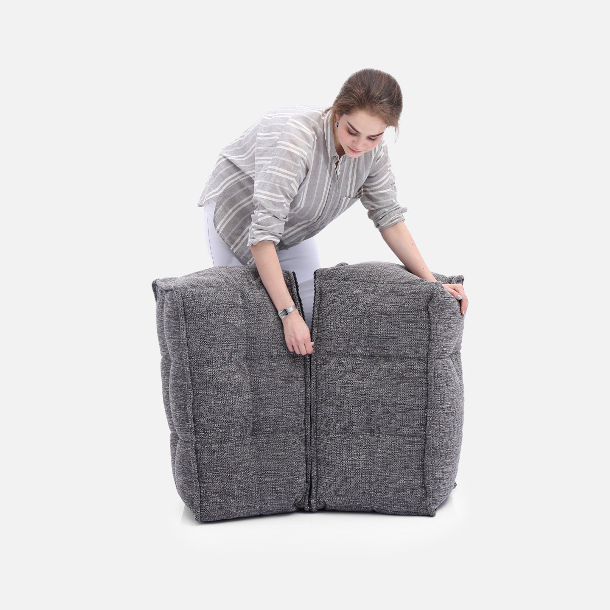 This contemporary ottoman is made with internal elastics that hold it's square shape. Perfect when you need to lift your feet up while lounging, place your laptop or book while you rest, or simply as another seat around the living room, kid's playroom, or home office.