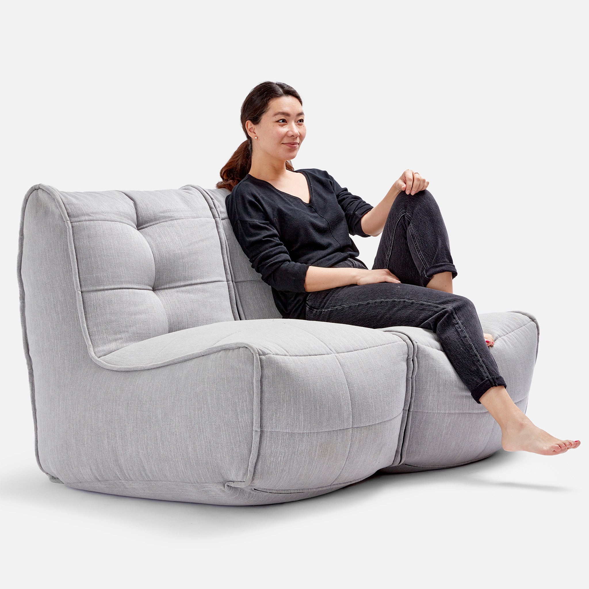 A bean bag couch that is already a British design classic! As featured in hotels, cinemas and universities, this amazing quilted, premium interior fabric lightweight bean bag couch that zips to two single seat chairs. Made with Internal elastics for structure and support.