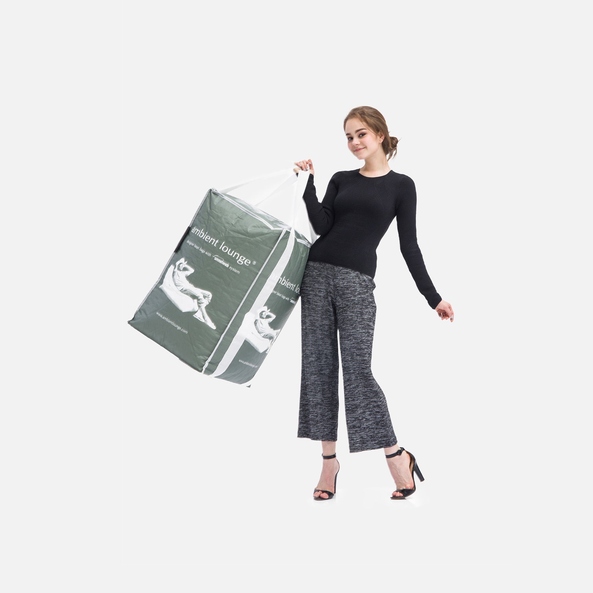 ambient lounge bean bag filling comes in the Patented Funnelweb™ Zip & Tip System delivered in an environmentally friendly re-usable transport bag directly to your door. It’s a one-man job that is quick, convenient and easy.