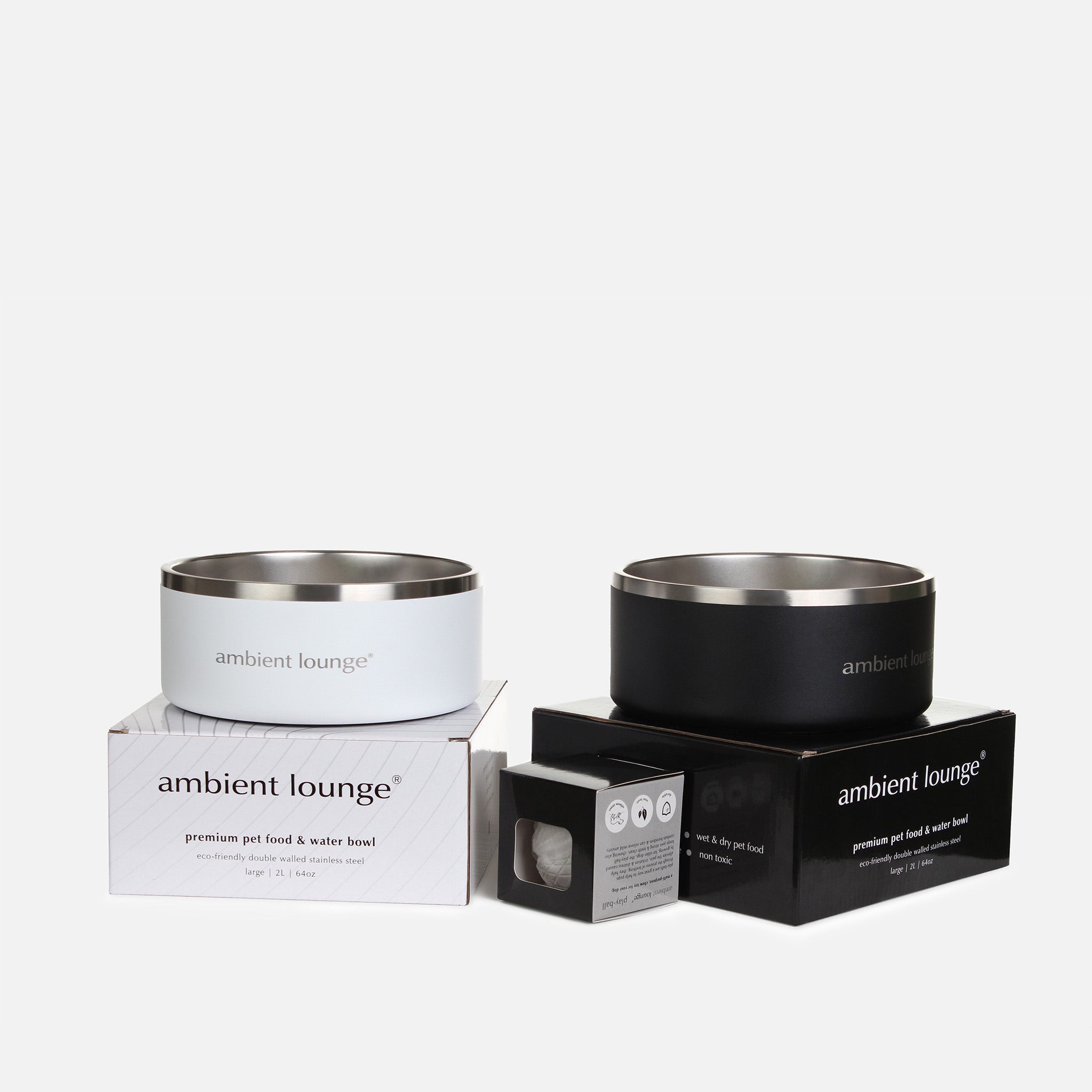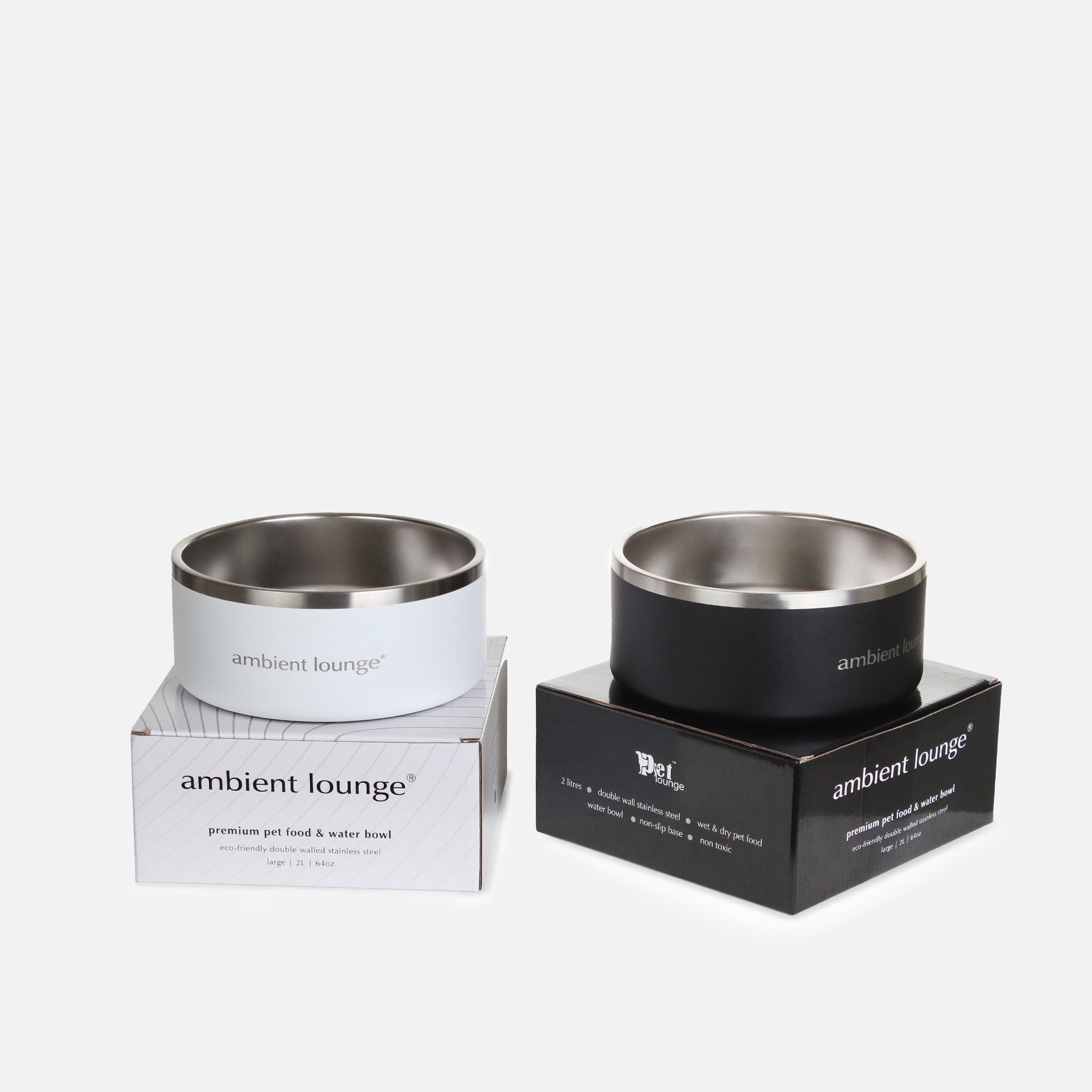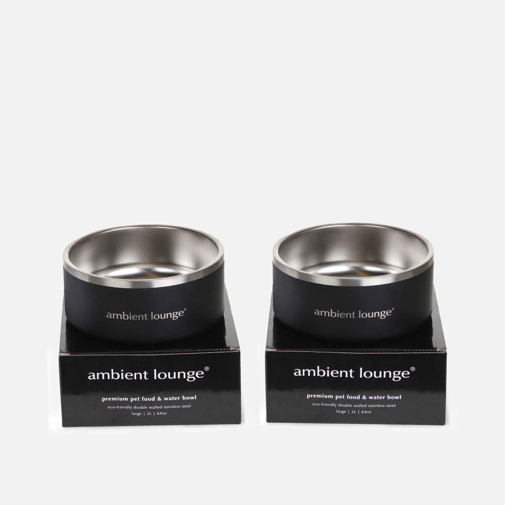 2L Double-Wall Stainless Steel Food & Water Dog Bowl (Set of 2)